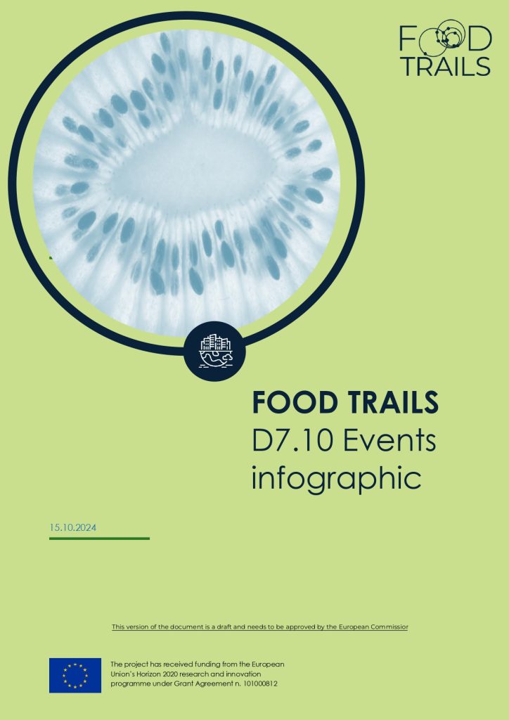 The Events Infographic (D7.10), which summarizes the events that Food Trails organized, co-organized, or participated in, creates a visual representation that effectively communicates the central role that Food Trails events played in the project.