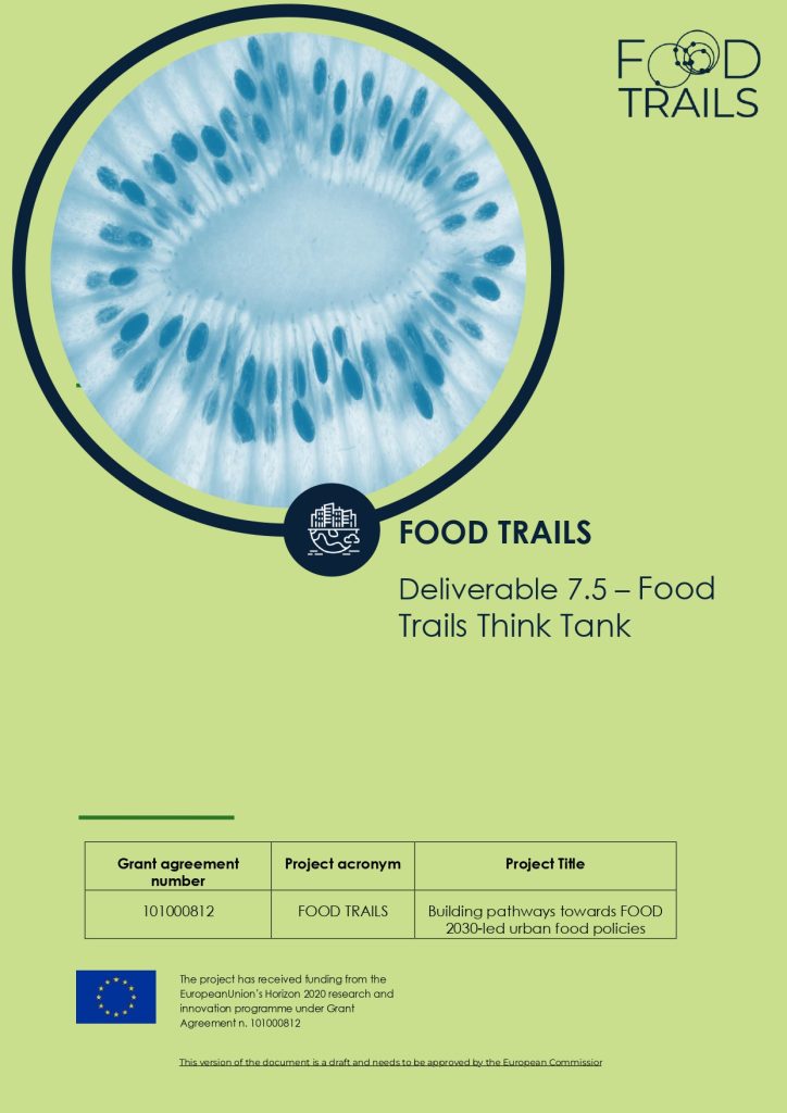 The report Food Trails Think Tank (D 7.5) aims to provide a comprehensive overview of the establishment and operation of the Think Tank within the Food Trails Project. It offers expert recommendations for enhancing urban food policies, drawing on the Think Tank’s extensive experience and insights. These recommendations are intended to guide cities, governments, and […]